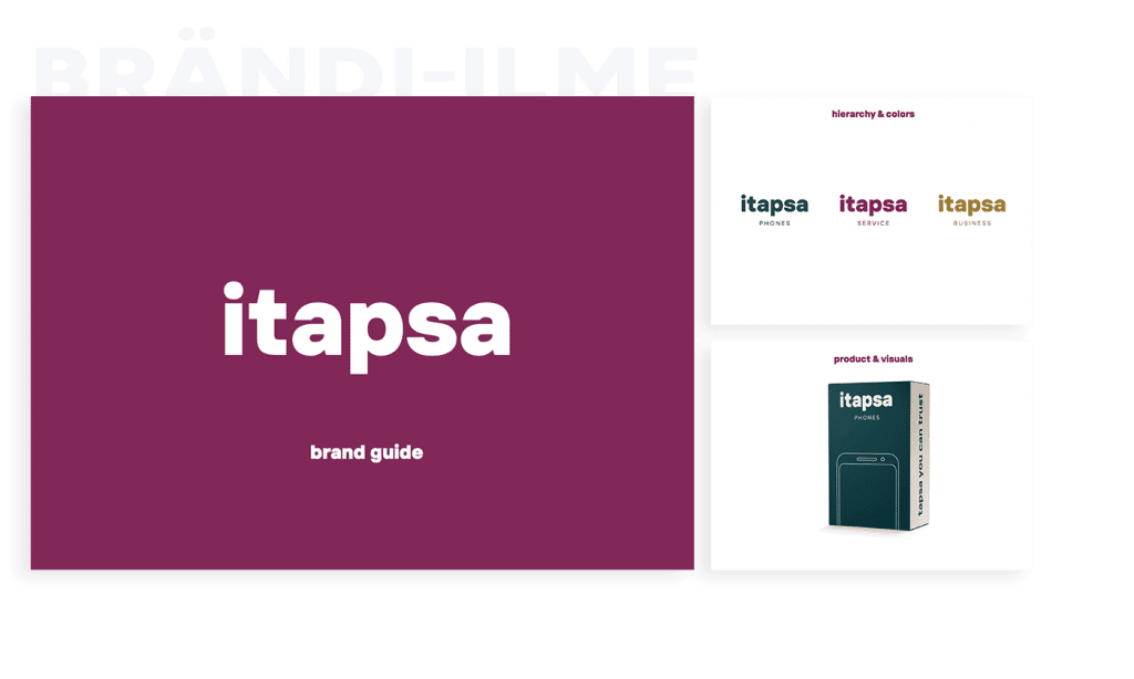 Visuaalisen ilmeen suunnittelun jälkeen toimitamme yrityksellesi toteutetut materiaalit. Brand book pitää sisällään käytännön ohjeet visuaalisen ilmeen toteuttamiseen, esimerkiksi värisävyt tai fontit. Se sisältää myös brändistrategian. Mikäli brändistrategiaa ei ole toteutettu, graafinen ohjeisto voi olla esimerkiksi yksi PDF-muotoinen sivu.