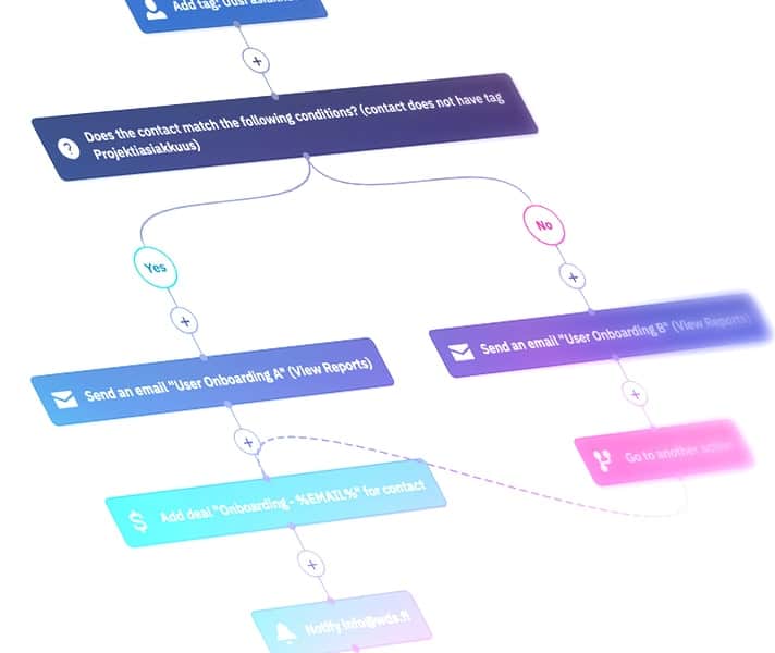 Perustamme yrityksellesi oman ActiveCampaign-tilin, jonka avulla markkinoinnin automaatio toteutetaan.